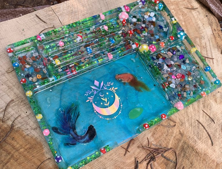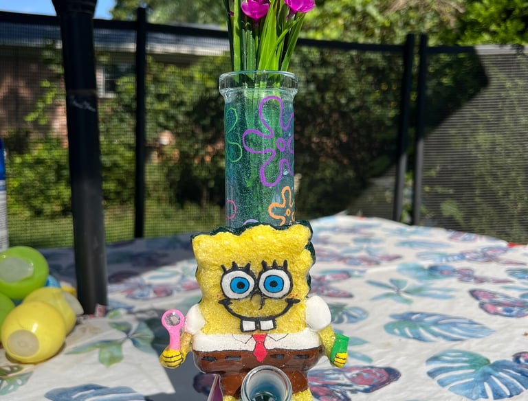 Order a unique glass bong hand decorated and sealed with epoxy resin. Hand wash only with salt and iso or 420 bong cleaner :)